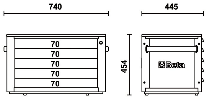 - 5 drawers, 70 mm high.