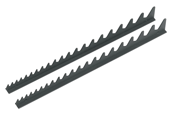 Durable composite shark’s teeth wrench rack helps maintain an organised top chest/roll cab.