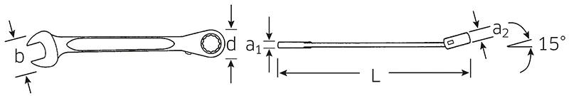 - Tight ratchet angle of only 5°, Ring end offset by 15°