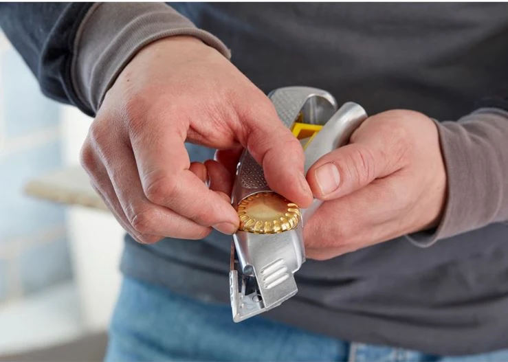 - Spring loaded opening – Fast blade change & no chance of losing the top cover.