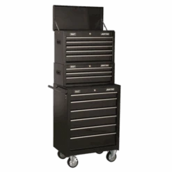 Sealey AP22BSTACK 14 Drawer Tool Box Stack – Roll Cab, Top & Mid Chests – Black