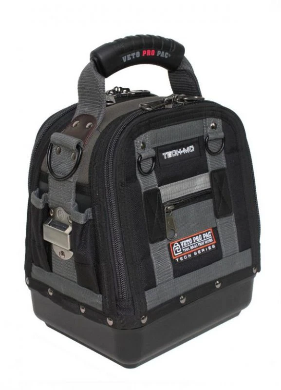 Veto Pro Pac’s Tech MC is a compact, yet fully featured service, repair or installation tool bag that features everything you have come to expect from Veto Pro Pac: Veto Pro Pac™s patented center panel, heavy duty construction and stabilizing injection molded waterproof base that keeps tools dry, even in the nastiest of conditions.
