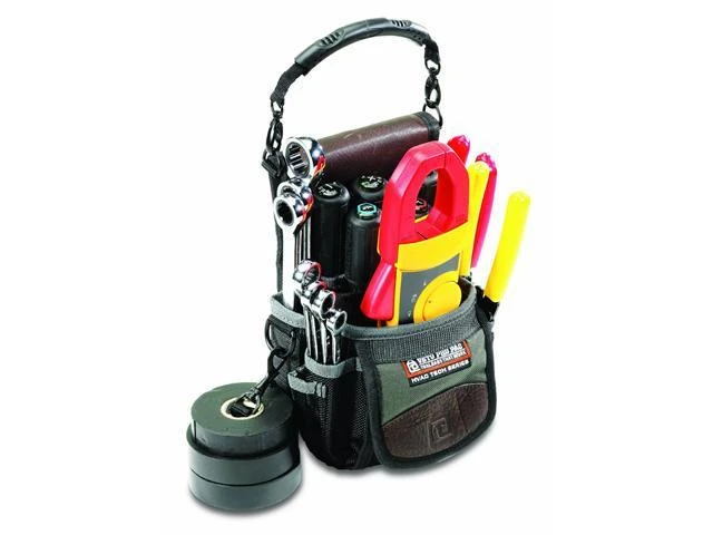 The TP3 is a clip-on diagnostics bag designed to hold a meter and a variety of tools. When not in use it can clip onto any model Veto tool bag™s tape clip or D-Rings. It features 19 pockets of various sizes that will accommodate the most commonly used tools to diagnose and repair problems on service calls.