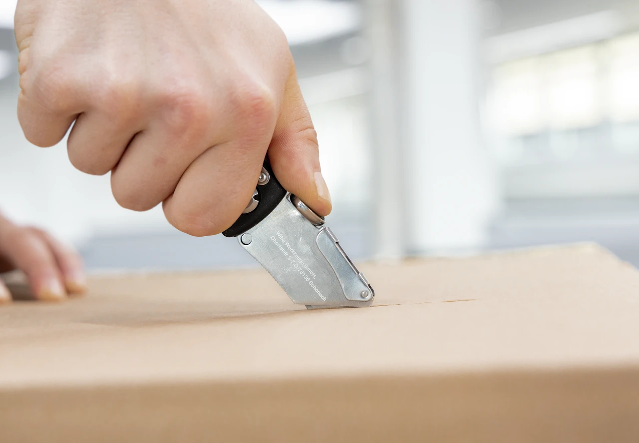 - For a quick and tool-free change of broken or worn out blades there is a replacement blade depot with a total of five trapezoidal blades in the handle of the knife.